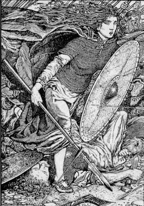 Ladgerda, who, though a maiden, had the courage of a man, and fought in front among the bravest with her hair loose over her shoulders. All marvelled at her matchless deeds, for her locks flying down her back betrayed that she was a woman.